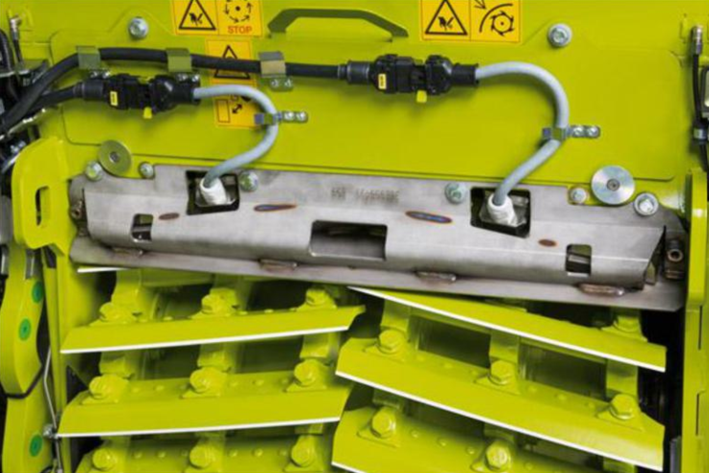 CLAAS innove dans le secteur des ensileuses avec le CEMOS AUTO KNIFE CONDITION. Cette nouveauté surveille l'état des couteaux de l'ensileuse à l'aide de capteurs à réluctance qui mesurent sans contact le tranchant des couteaux sur toute leur largeur et, ce pendant le travail. Le conducteur définit le degré d'affûtage dans le terminal et le système signale automatiquement le besoin d'affûtage. Ainsi, l'affûtage n'est effectué qu'en cas d'usure réelle. De plus, il est possible de documenter l'usure spécifique à chaque parcelle récoltée.