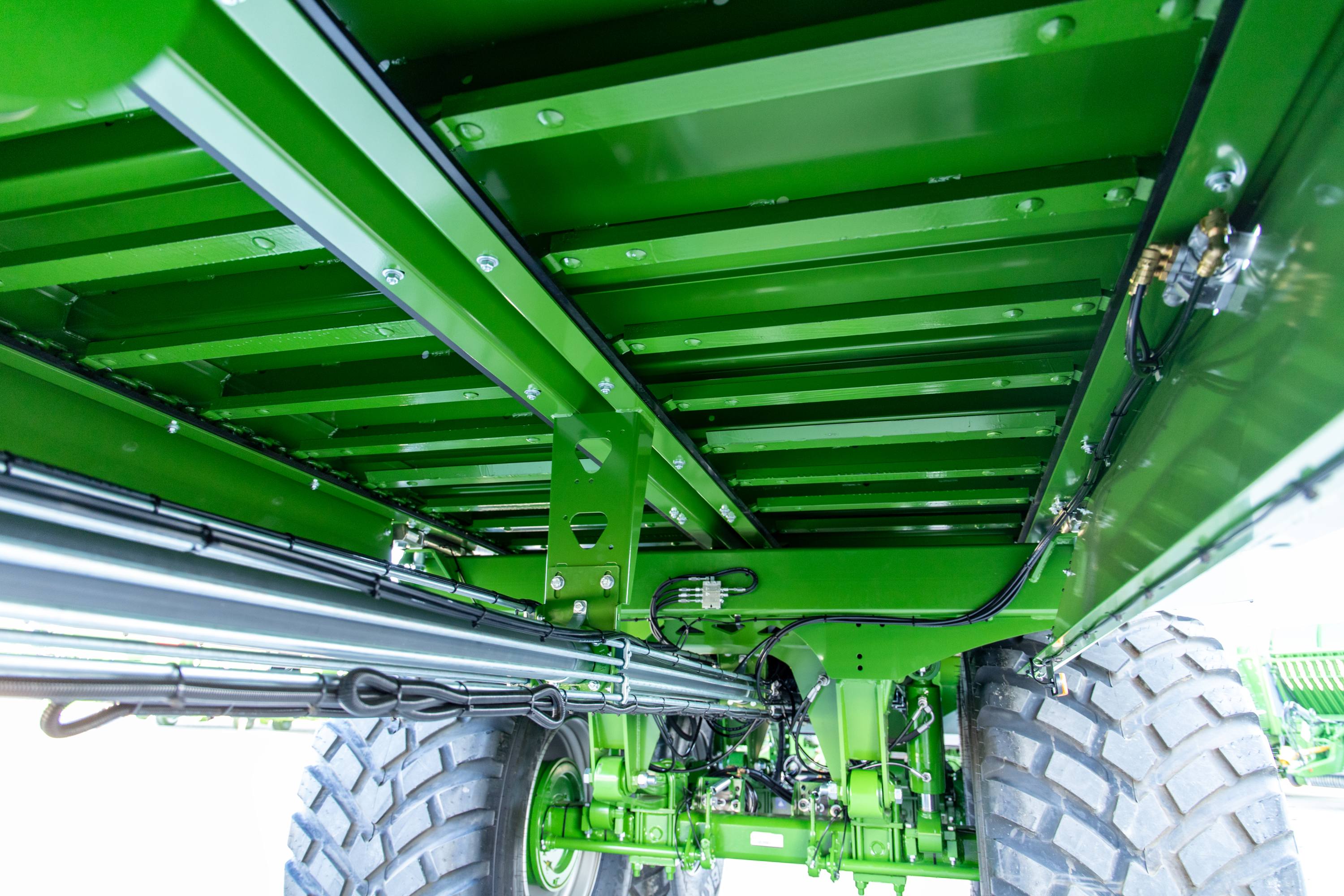 Zowel de hydraulische leidingen als de kabels zijn uniform, netjes en goed toegankelijk aangelegd.