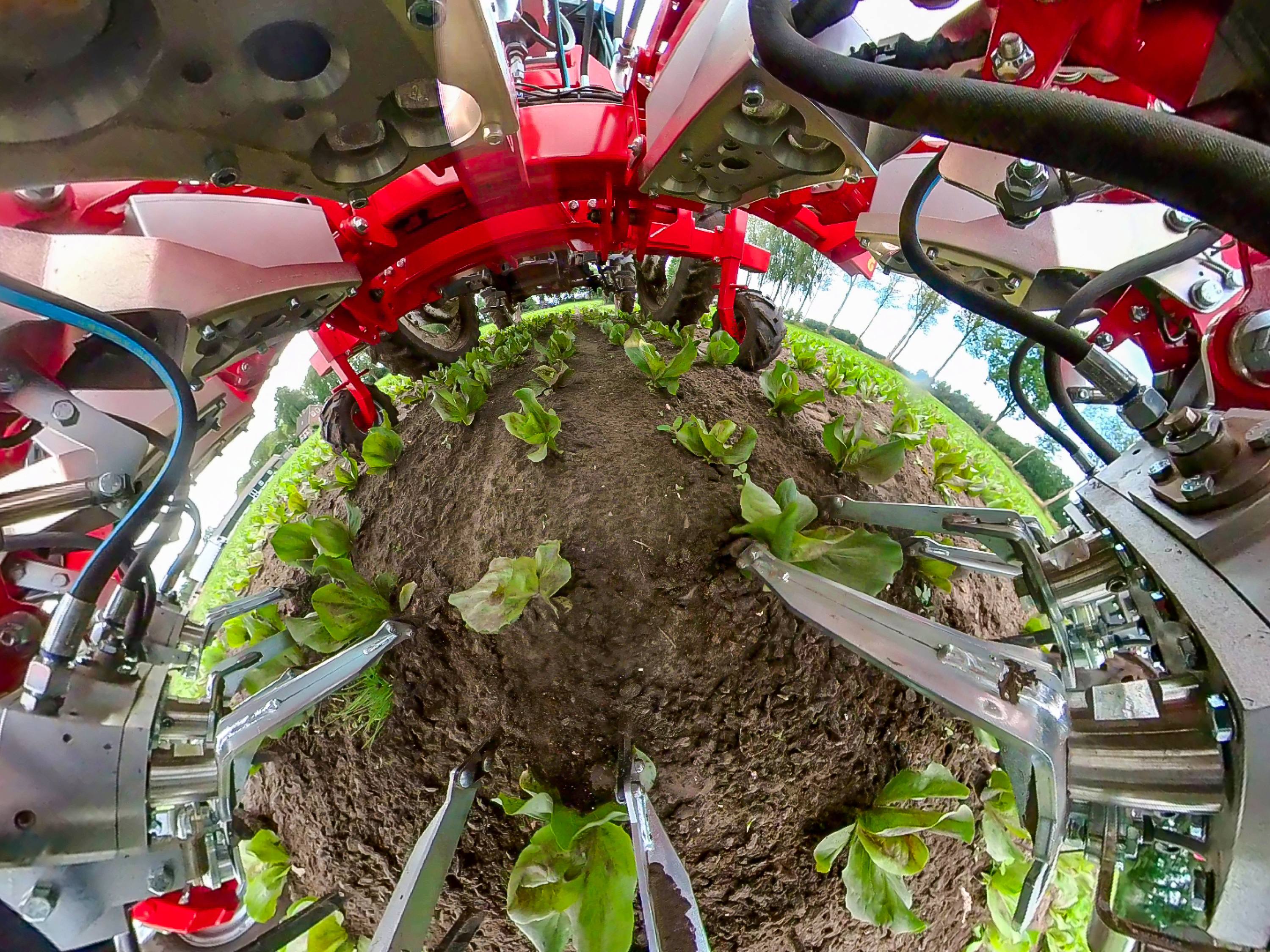 Op elke gewasrij bevindt zich een camera die de hydraulisch aangedreven schoffelmessen aanstuurt. Deze werken van beide zijden in de rij en verwijderen het onkruid tussen de planten. Het robuuste hydraulische regelsysteem is duurzaam, onderhoudsvrij en reageert in fracties van een seconde. Dit betekent dat de veiligheidsafstand tot de plant kan worden teruggebracht tot slechts één centimeter, afhankelijk van het gewas, de werksnelheid en de bodemomstandigheden.